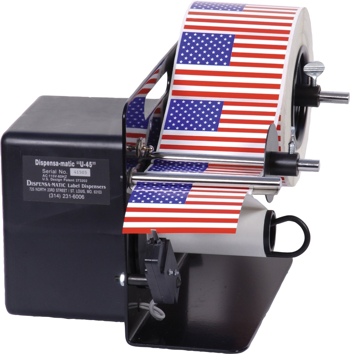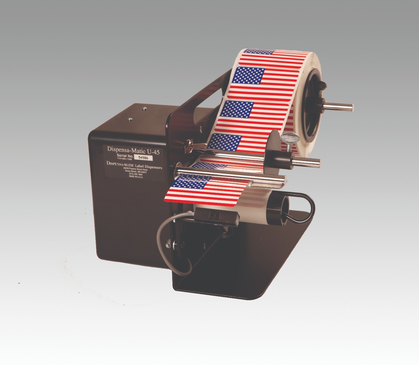 Dispensa-Matic U-45 Label Dispenser: Is a simple heavy-duty semi-automatic electric label dispenser that is designed for labels from 3/8 of an inch to 4 and 1/2 inch widths to any length tall. This label dispenser advances at over 5″ per second Standard Speed, and 11″ per second High Speed. U-45 allows you to peel small labels with ease.
